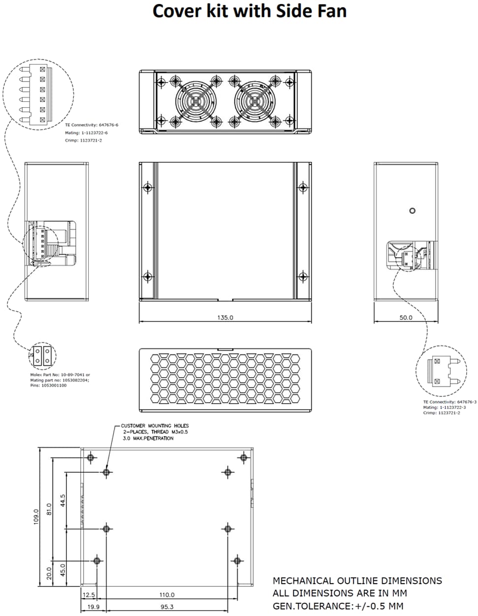 • Casing with side fan